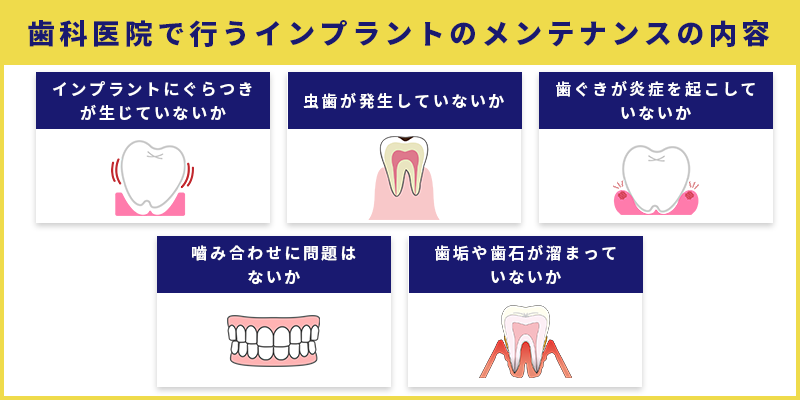 ここからは、歯科医院で行うインプラントのメンテナンスの内容を紹介します。